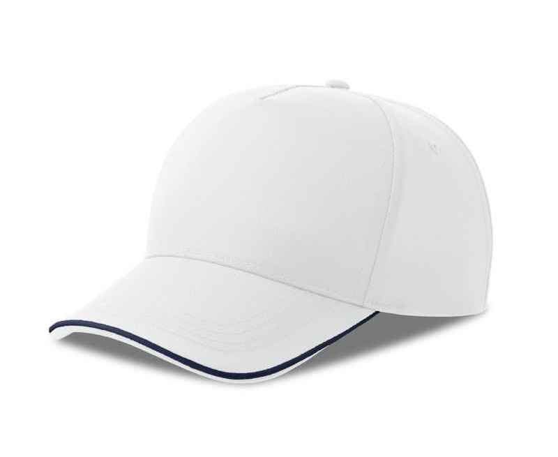 Подробнее о Atlantis Бейсболка RECY FIVE PIPING, 5 клиньев, застежка-липучка, белый/тёмно-синий, 100% полиэстер, 220 г/м2