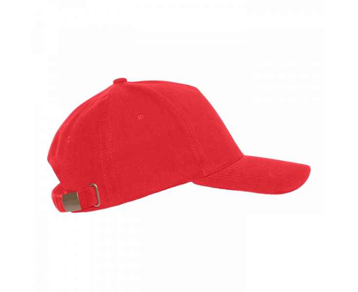 Бейсболка-пятиклинка без лобового шва с изогнутым жестким козырьком. Посадка регулируется ремешком на металлической застежке.