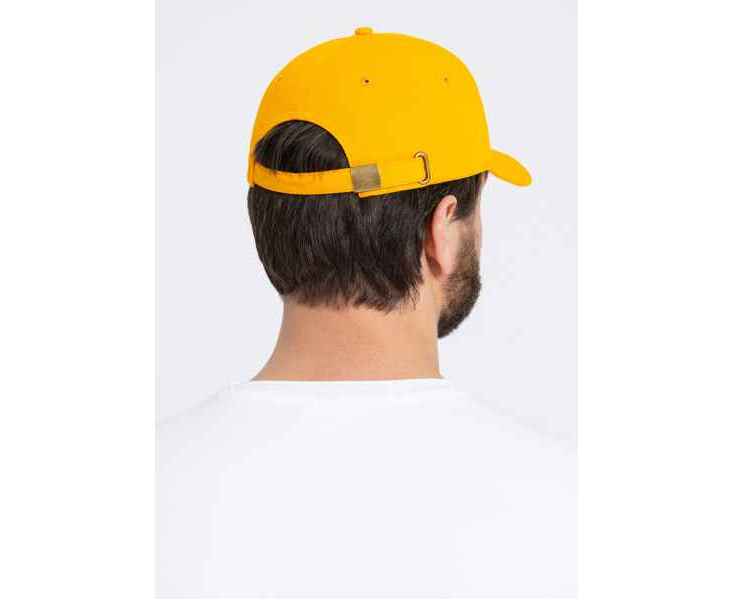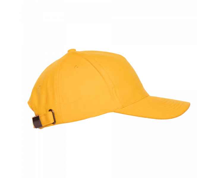 Бейсболка-пятиклинка без лобового шва с изогнутым жестким козырьком. Посадка регулируется ремешком на металлической застежке.