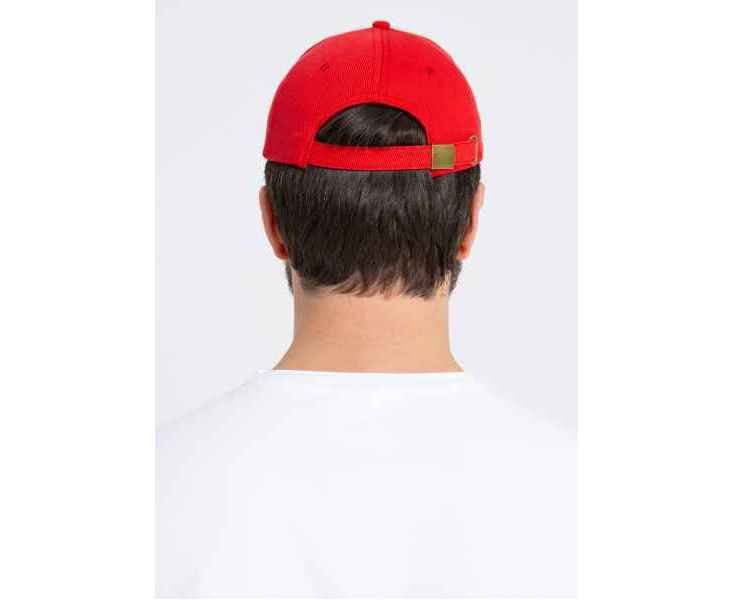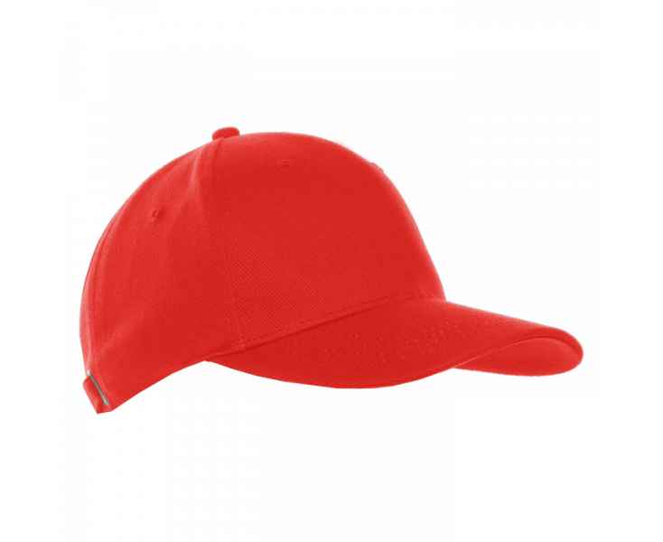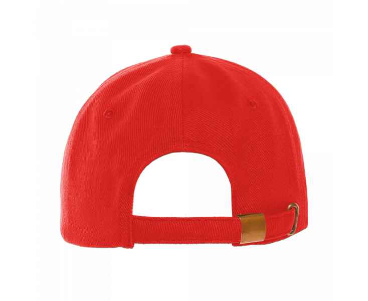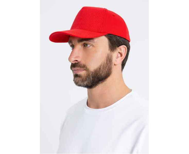 Бейсболка-пятиклинка без лобового шва с изогнутым жестким козырьком и регулируемой металлической застежкой.