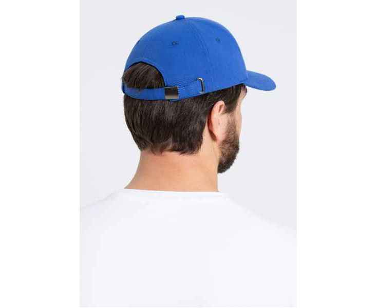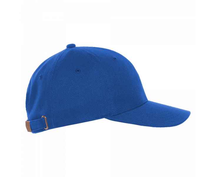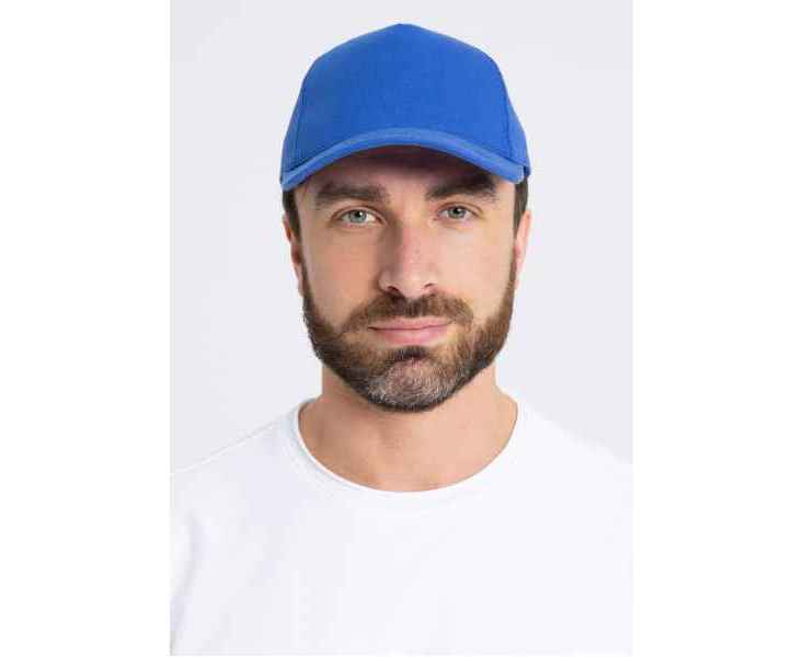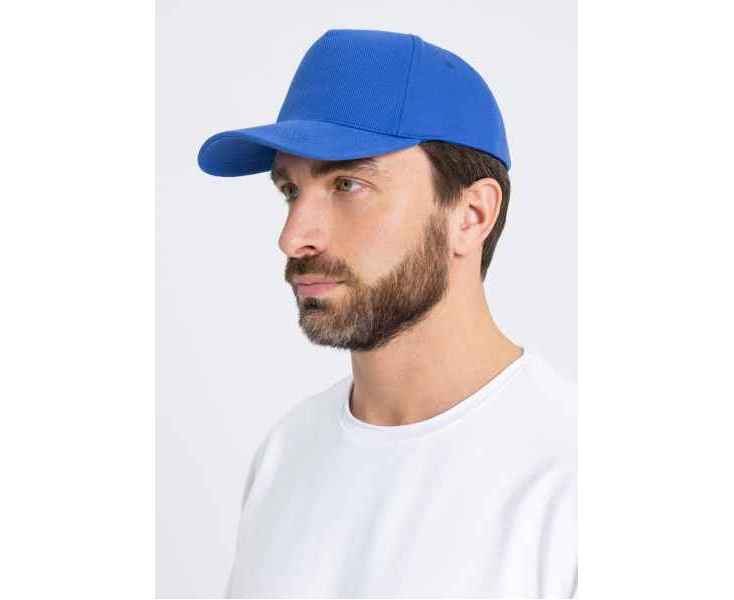 Бейсболка-пятиклинка без лобового шва с изогнутым жестким козырьком и регулируемой металлической застежкой.