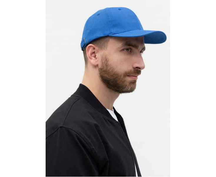 Бейсболка-шестиклинка с изогнутым жестким козырьком, прилегание регулируется ремешком с металлической застежкой.