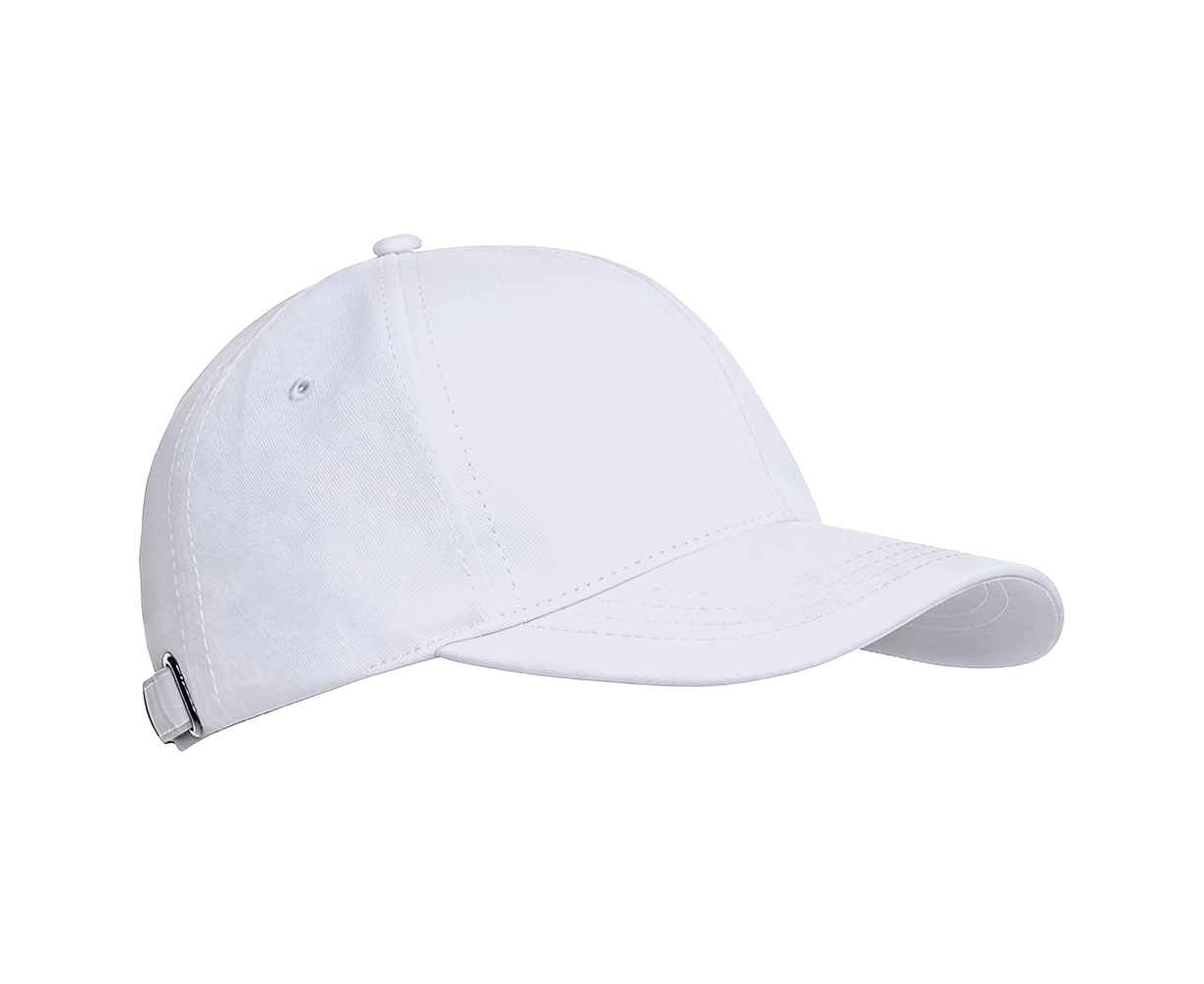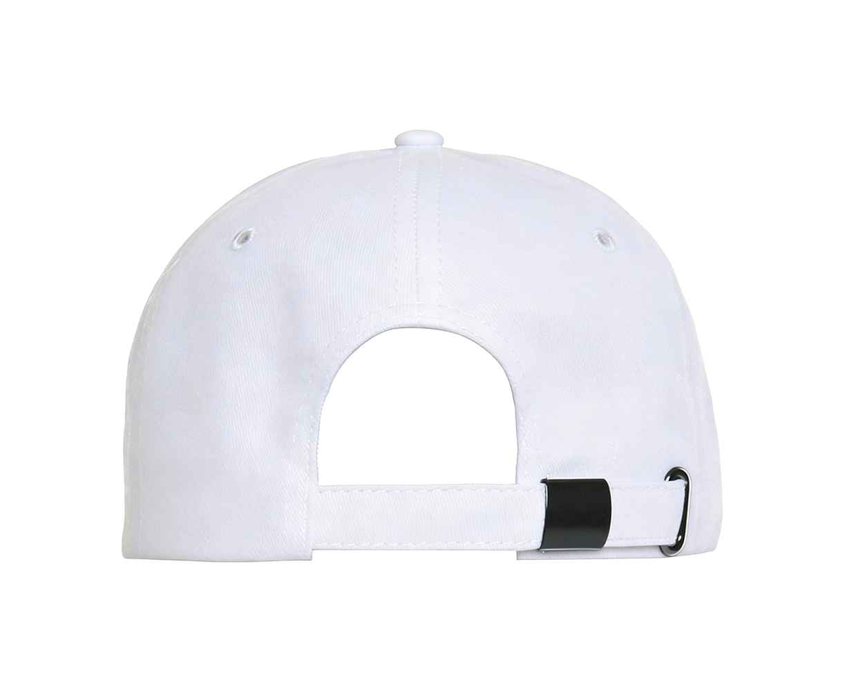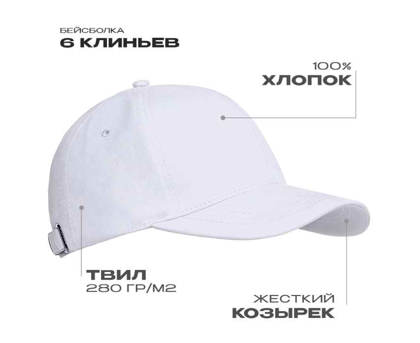 Бейсболка-шестиклинка с классическим изогнутым козырьком и застежкой на ленту с металлическим замком в тон основному цвету изделия.
