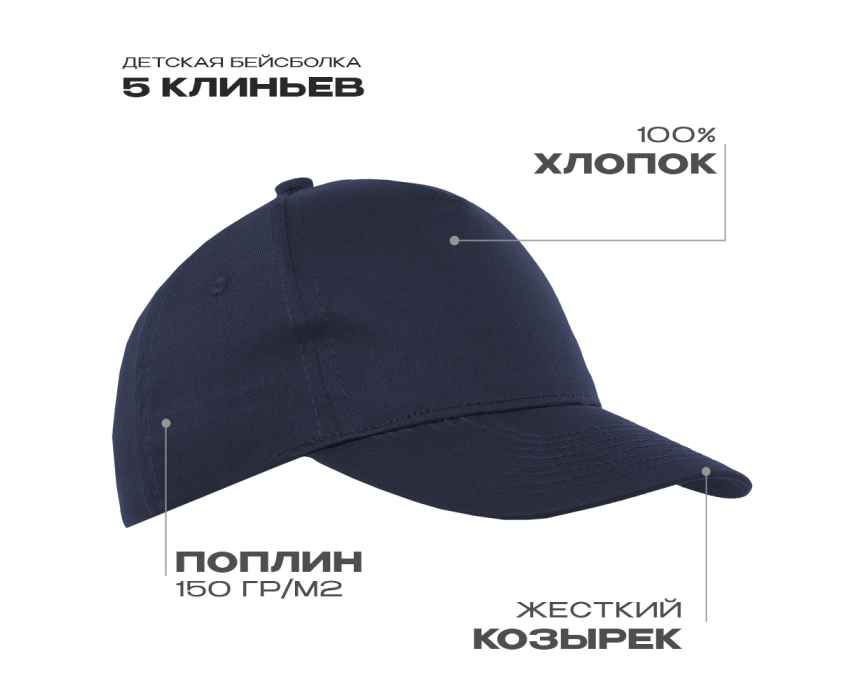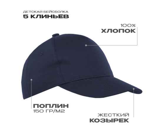 Подробнее о STAN Детская бейсболка STAN 5 клиньев хлопок 150, 10J, Тёмно-синий, (46) (52-54/ONE SIZE)