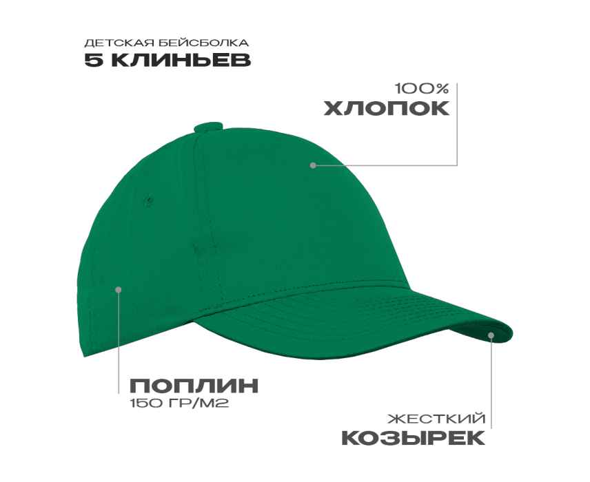 Подробнее о STAN Детская бейсболка STAN 5 клиньев хлопок 150, 10J, Зелёный, (30) (52-54/ONE SIZE)