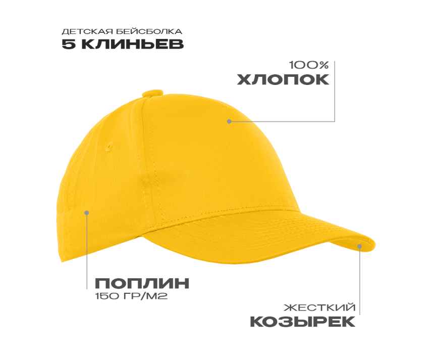 Подробнее о STAN Детская бейсболка STAN 5 клиньев хлопок 150, 10J, Жёлтый, (12/1) (52-54/ONE SIZE)