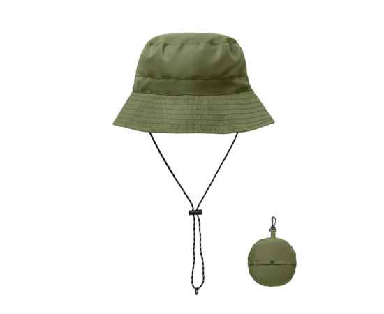 Шляпа рыбака из водоотталкивающего полиэстера, в комплекте чехол из того же материала с пластиковым карабином. 64 г/м².