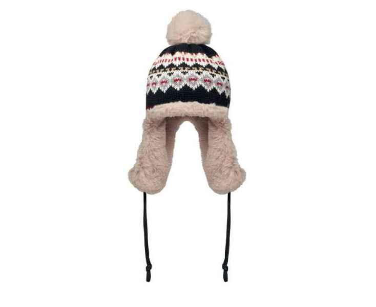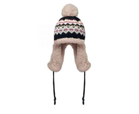 Вязаная шапка-ушанка из акрилового волокна с помпоном и подкладкой из полиэстера и флиса. Есть шильд для нанесения с одной стороны. Взрослый размер.
