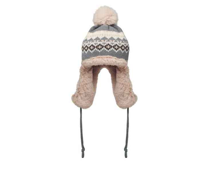Вязаная шапка-ушанка из акрилового волокна с помпоном и подкладкой из полиэстера и флиса. Есть шильд для нанесения с одной стороны. Взрослый размер.