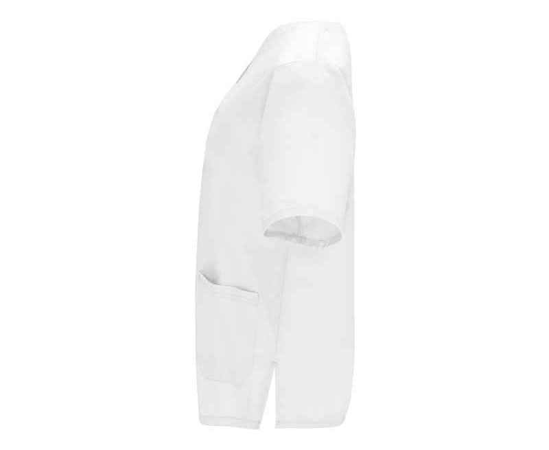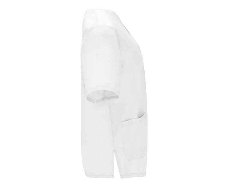 Рабочая блуза унисекс с короткими рукавами и горловиной с V-образным вырезом с небольшим запахом. Один нагрудный карман и два карманы по бокам. Боковые разрезы. Комбинируется с брюками Vademecum.