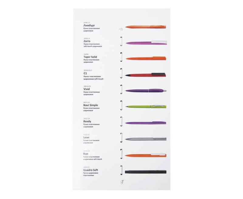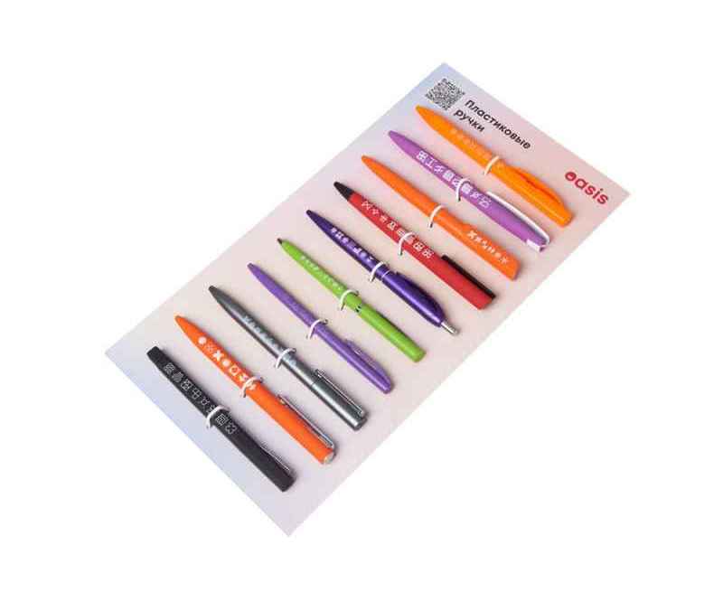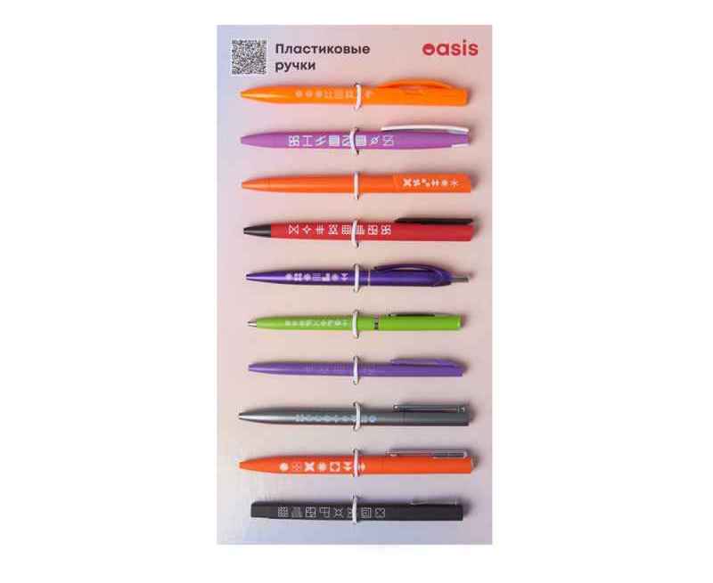 Промо-сет пластиковых ручек — это презентационный комплект, включающий 10 уникальных моделей с несколькими вариантами нанесения: УФ-печать, тампопечать и трафаретная печать.