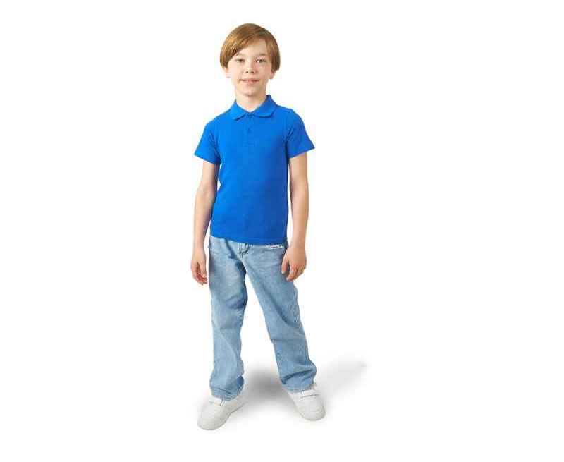 Детская рубашка поло First. Воротник 1х1. Обшивка внутри воротника. Мужская и детская модели с 2 пуговицами, женская - с 4 пуговицами. Пуговицы с гравировкой в тон. Пике, 100% хлопок. 160 г/м².