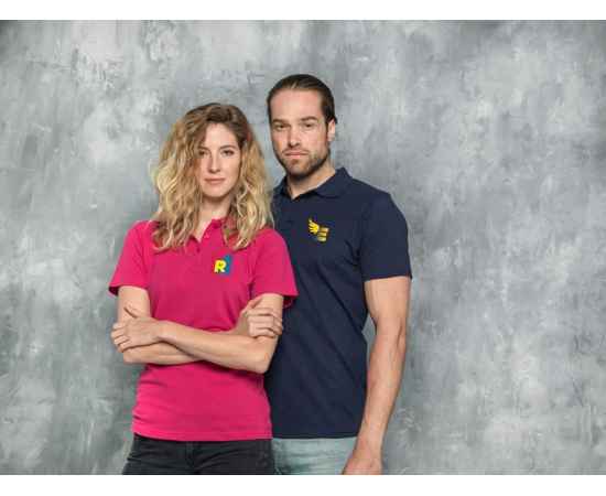 Мужское поло Helios с коротким рукавом. Отрезной-отрывной ярлык для комфорта. Воротник гладкой вязкой в рубчик. Планка с двумя пуговицами. Двойная строчка на воротнике и внизу изделия. Пуговицы в цвет изделия. Полоска на горловине в контрастном цвете. Трикотаж Piqué, 100 % хлопок. 180 г/м².