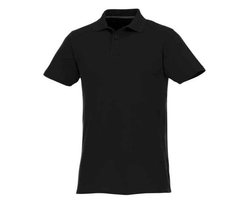 Мужское поло Helios с коротким рукавом. Отрезной-отрывной ярлык для комфорта. Воротник гладкой вязкой в рубчик. Планка с двумя пуговицами. Двойная строчка на воротнике и внизу изделия. Пуговицы в цвет изделия. Полоска на горловине в контрастном цвете. Трикотаж Piqué, 100 % хлопок. 180 г/м².