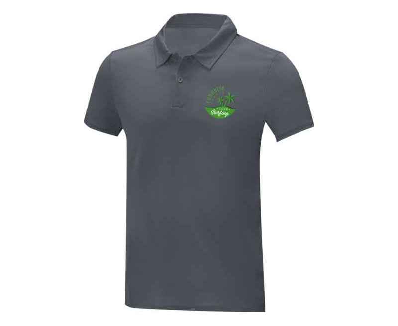 Мужская стильная футболка поло с короткими рукавами Deimos. Возможность нанесения на внутреннюю часть фирменной символики. Планка с двумя пуговицами. Для большего комфорта основной ярлык можно оторвать или отрезать. Обработка воротника обтачкой из основной ткани. Передний боковой шов со строчкой флатлок. Сетчатая ткань с покрытием cool fit 100% Полиэстер, 105 g/m2.