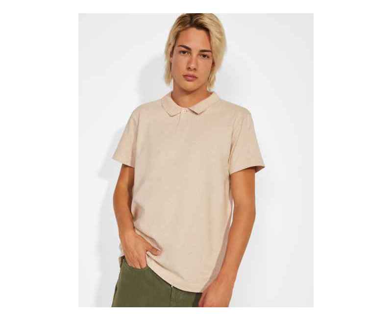 Рубашка поло с коротким рукавом из однотонного трикотажа. Воротник в рубчик 1x1. Разрез с застежкой на 1 пуговицу. Усиленные закрытые швы в воротнике. Боковые разрезы на подоле. Контрастная тесьма в елочку по низу рукава и на воротнике. Логотип Roly внутри.