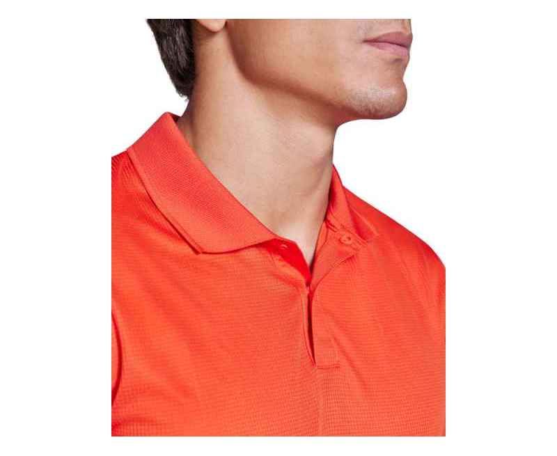 Мужское поло с коротким рукавом из технологичного полотна. Рибовый воротник 1х1, застежка на кнопки. Отстрочка в тон. Рибовые манжеты.