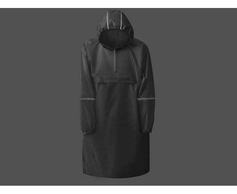 Дождевик - пончо прямого силуэта. Нагрудный карман плаща закрывается на молнию, которая дополнительно защищена клапаном, а еще в него можно полностью убрать дождевик. На дне кармана — ручка-петелька, которая в сложенном виде может использоваться для подвешивания.