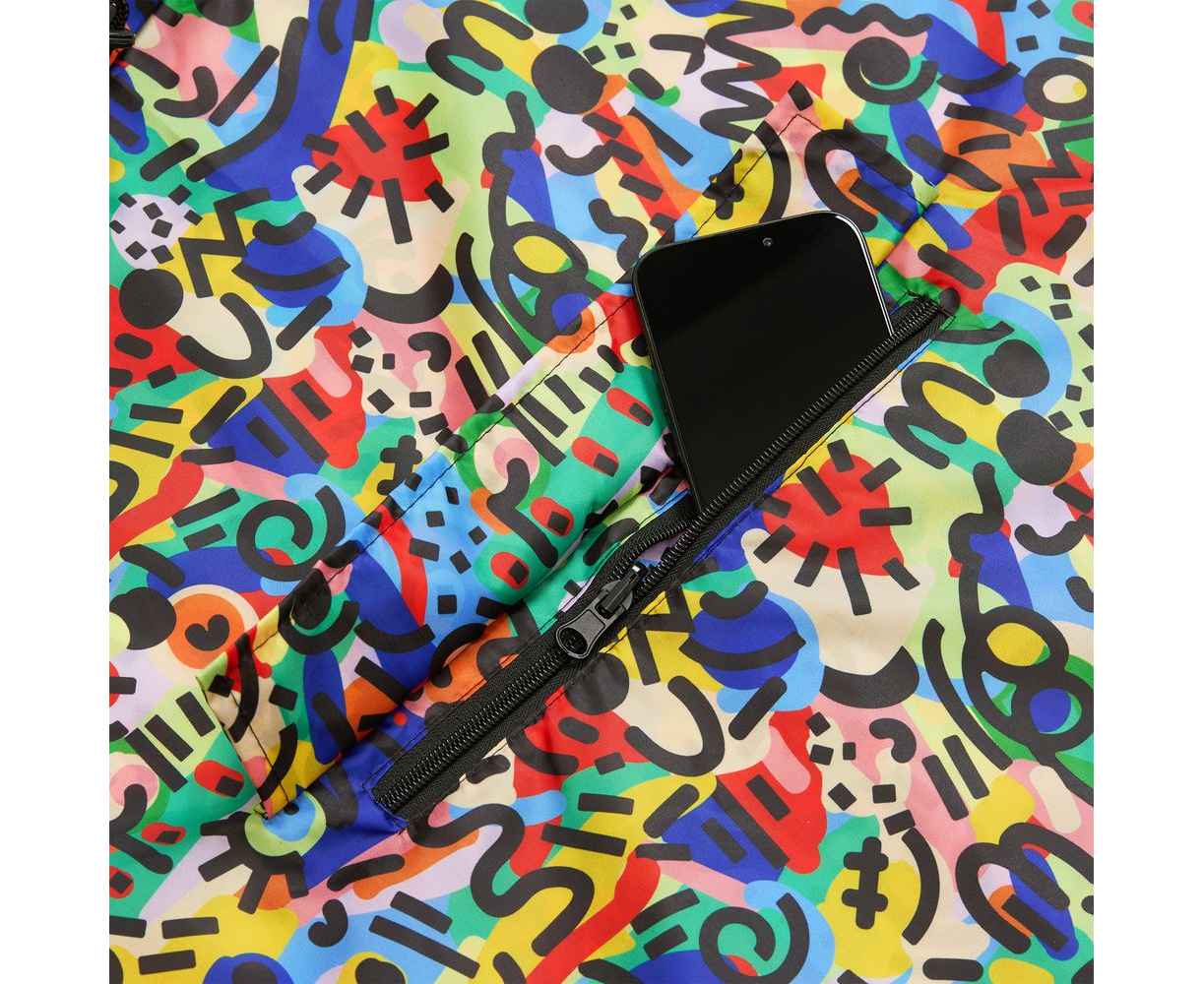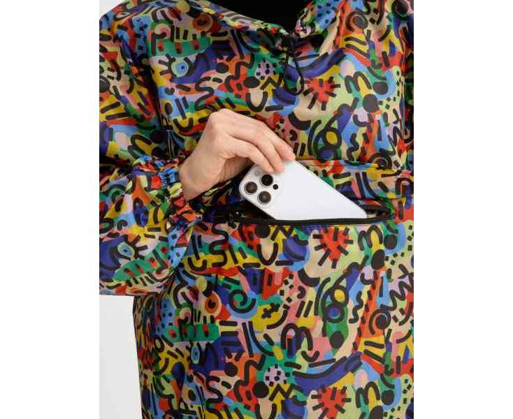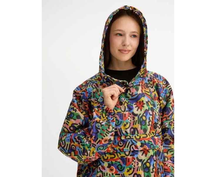 Приложите к заказу оригинал-макет закольцованного бесшовного (endless) узора или паттерна в виде квадрата или прямоугольника с разрешением 300 dpi в масштабе 1 к 1. Полные технические требования к оригинал-макетам смотрите в пункте «Сублимация».Дождевик-анорак с капюшоном из ткани таффета.