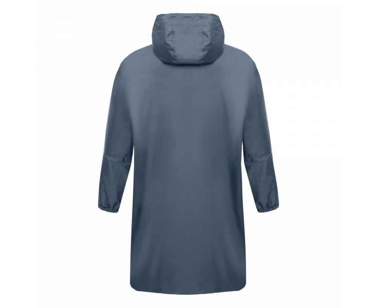 Цельнокроеный дождевик прямого силуэта со спущенным плечом, застежкой на молнию и глубоким прорезным карманом. Для дополнительной защиты от ветра и дождя капюшон дополнен кулисой с резинкой на фиксаторе, а манжет рукава укреплен эластичной резинкой.