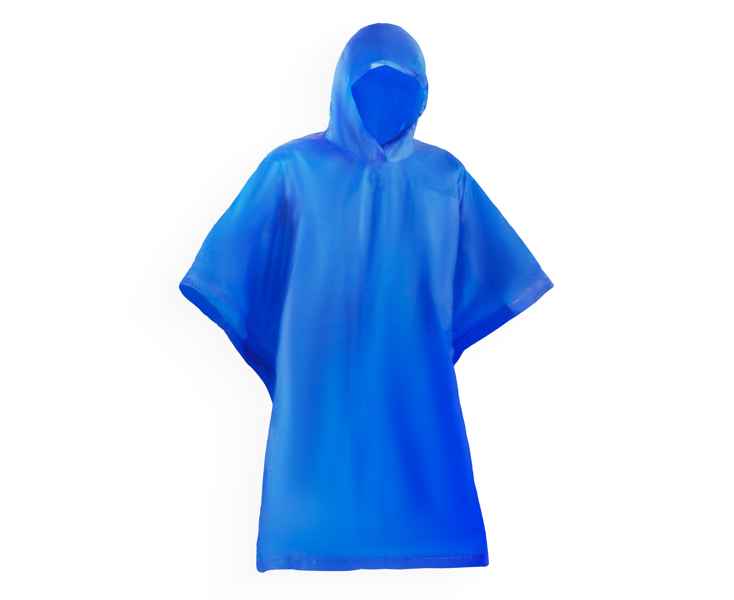 Складное водонепроницаемое пончо- дождевик с капюшоном и прорезями для рук. Утепленные края и боковая застежка на кнопках. Широкая цветовая гамма. ПВХ.