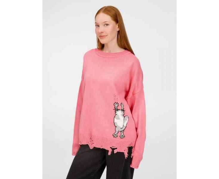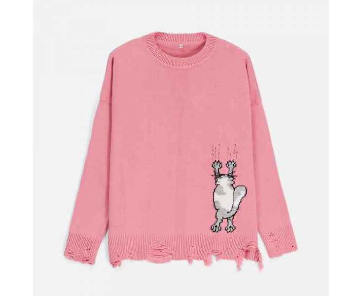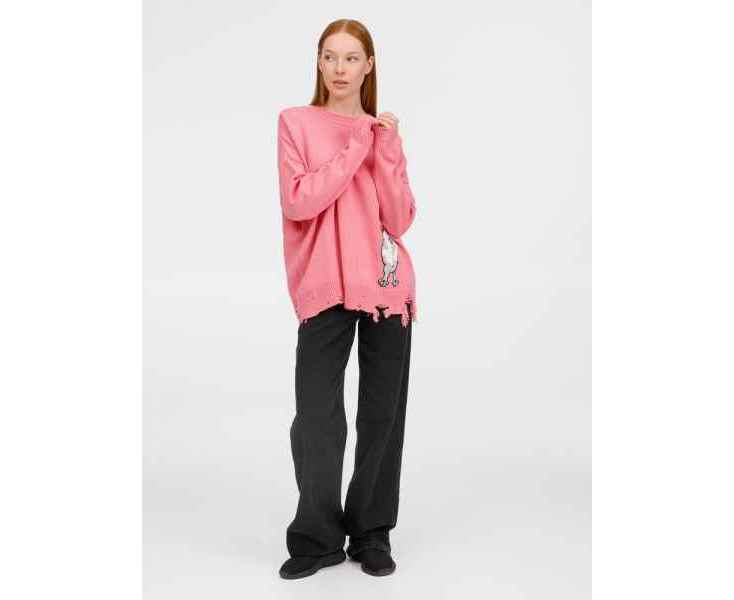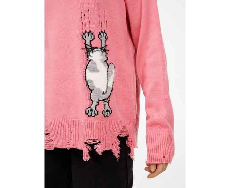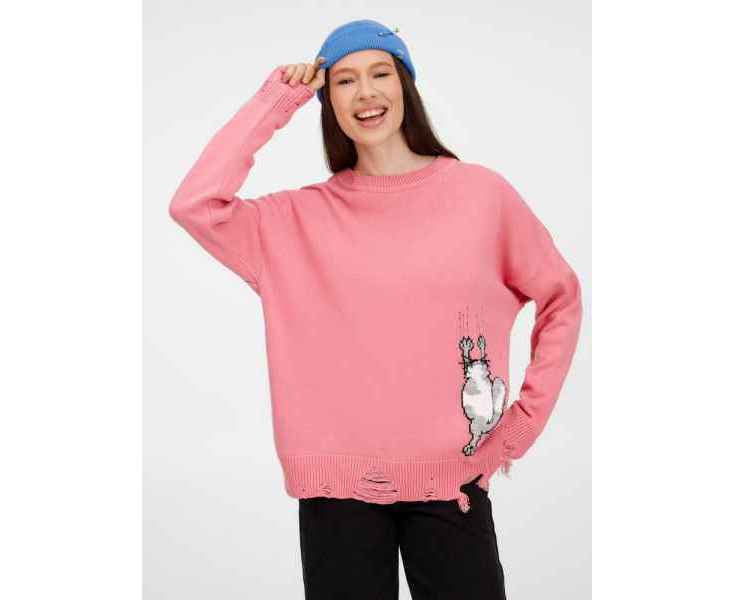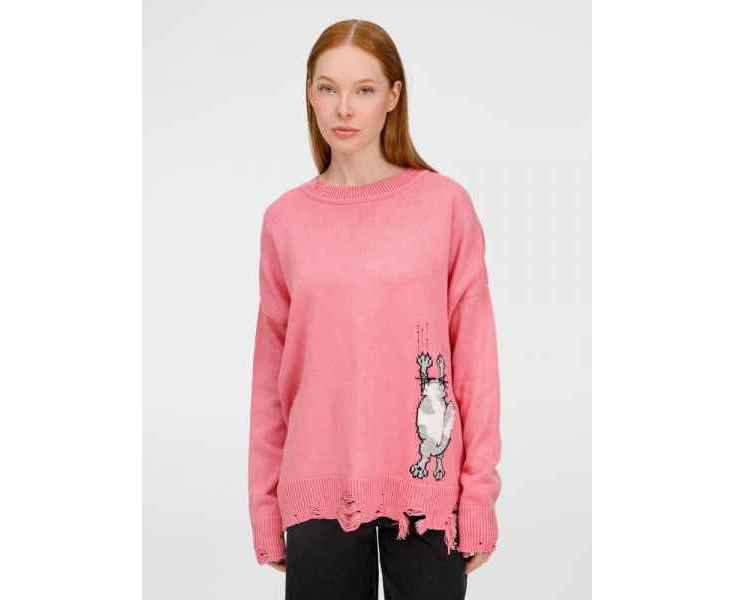 В дизайне мягкого джемпера с круглым вырезом Sharpick гранж-эстетика органично сочетается с милым акцентом — пушистым рисунком в виде озорного котика. Получается веселая вариация на тему того, откуда берется модная рваная одежда, а джемпер моментально создает настроение легкой несерьезности. Рваные края изделия добавляют современную нотку, а резинка на вороте, манжетах и по низу обеспечивает удобную посадку.
