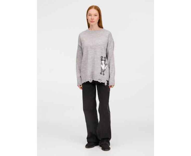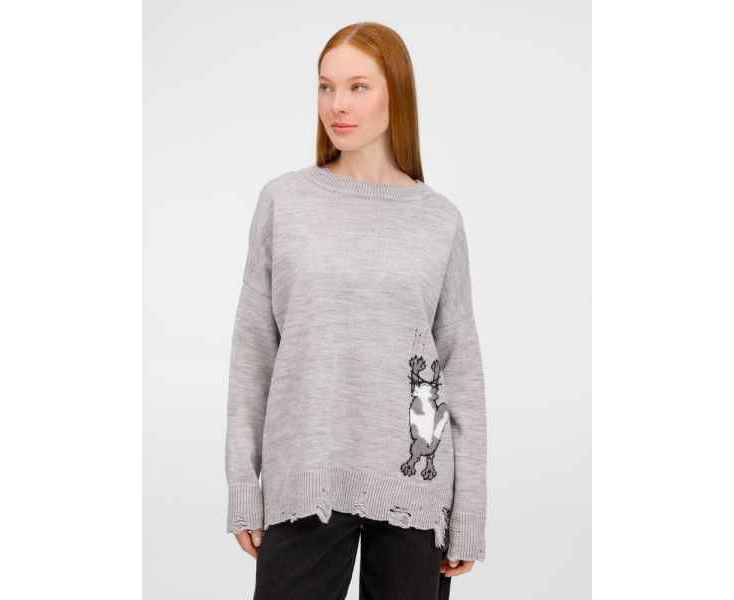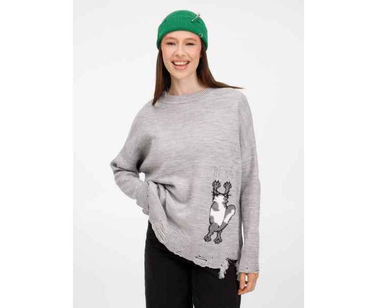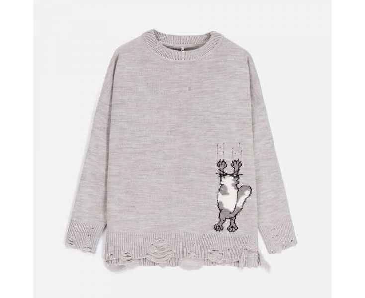 В дизайне мягкого джемпера с круглым вырезом Sharpick гранж-эстетика органично сочетается с милым акцентом — пушистым рисунком в виде озорного котика. Получается веселая вариация на тему того, откуда берется модная рваная одежда, а джемпер моментально создает настроение легкой несерьезности. Рваные края изделия добавляют современную нотку, а резинка на вороте, манжетах и по низу обеспечивает удобную посадку.