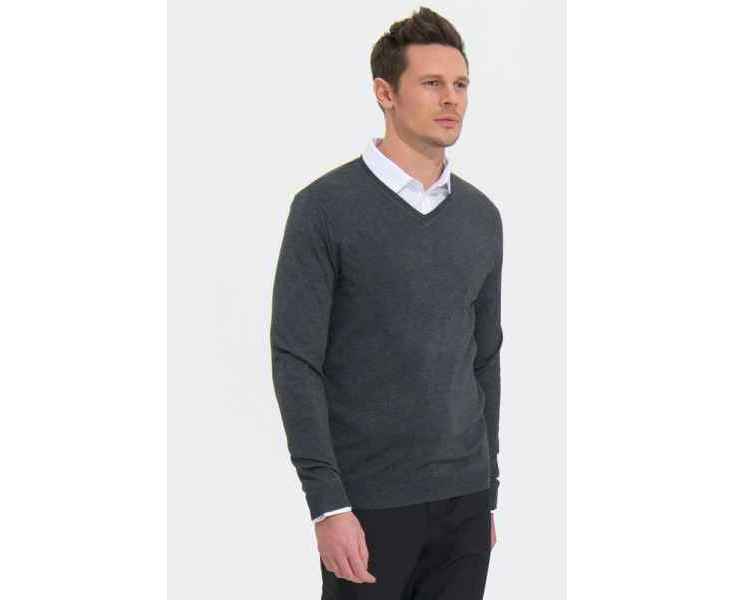 Облегающий пуловер с V-образной горловиной, который отлично сидит на фигуре.