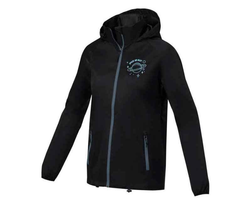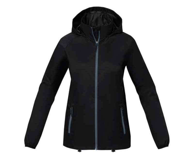 Dinlas Женская легкая куртка. Возможность нанесения на внутреннюю часть фирменной символики. Для большего комфорта основной ярлык можно оторвать или отрезать. Водонепроницаемость 500 мм. Рукав реглан. Капюшон, который можно свернуть. Обратная застежка-молния по центру. Передние карманы с застежкой-молнией. Внутренний карман. Регулируемый шнурок внизу подола и капюшоне.