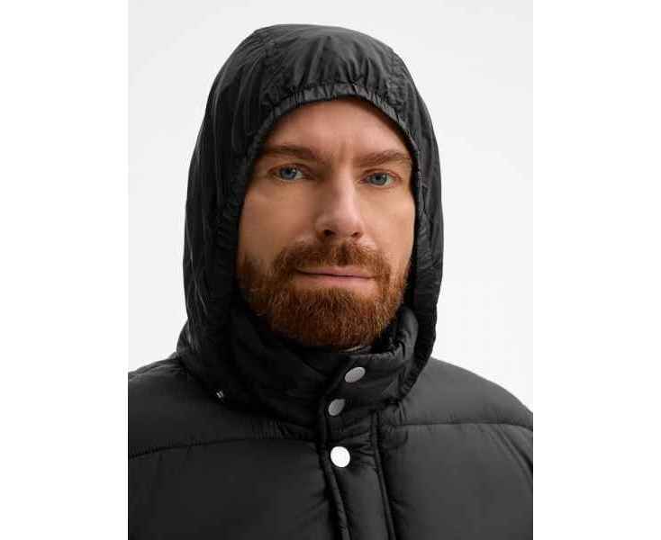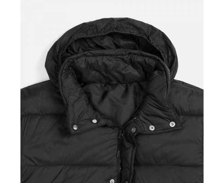 - Капюшон без подкладки убирается в воротник и плотно фиксируется на потайные кнопки