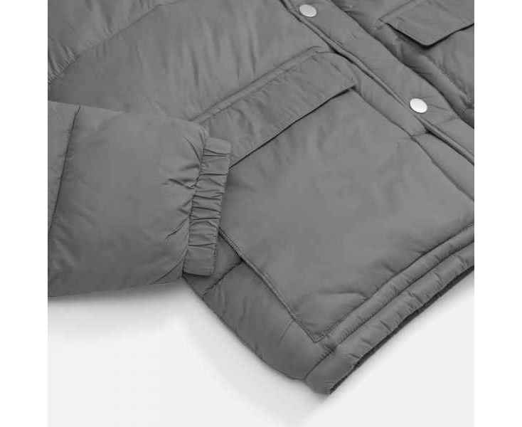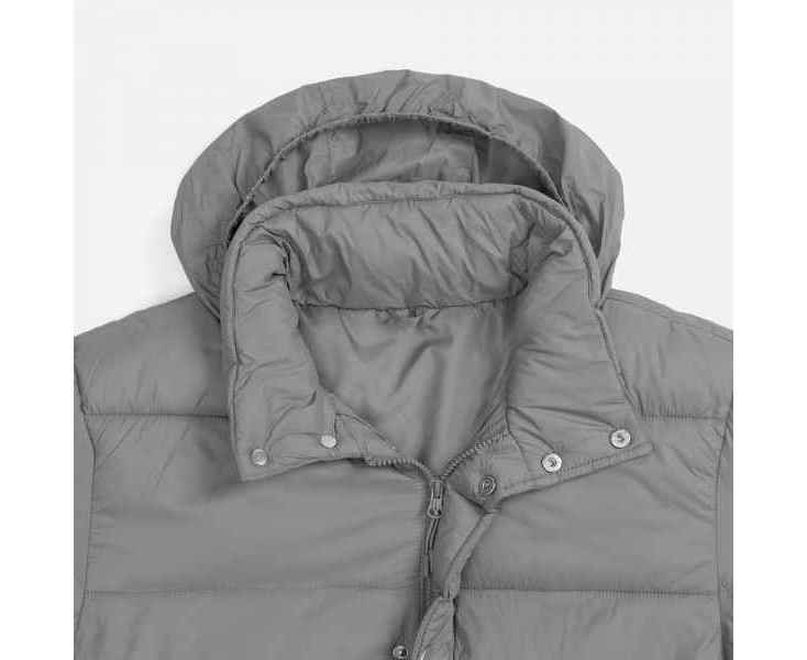 - Капюшон без подкладки убирается в воротник и плотно фиксируется на потайные кнопки