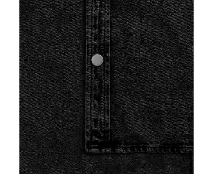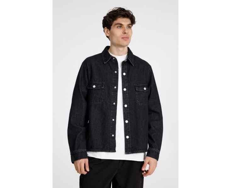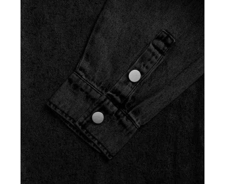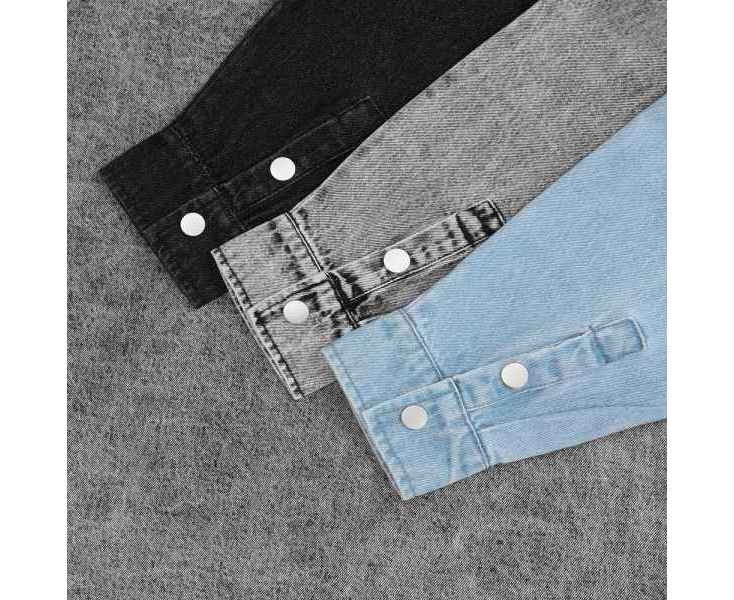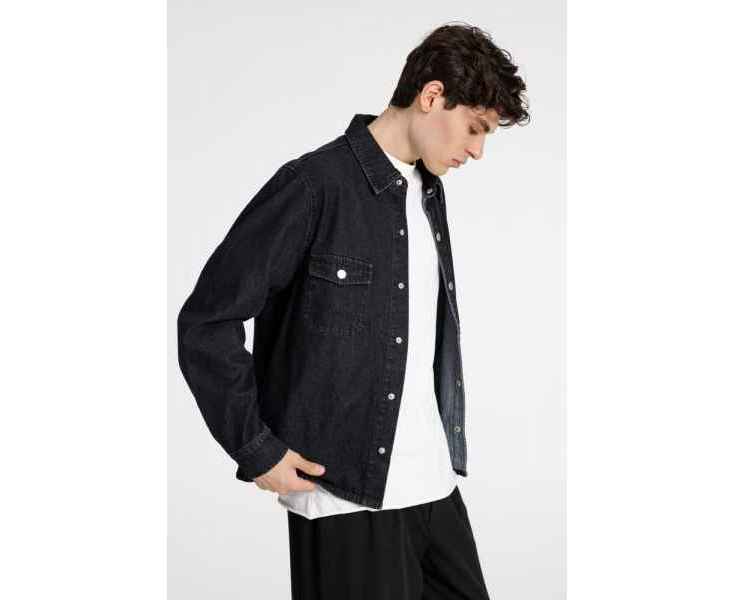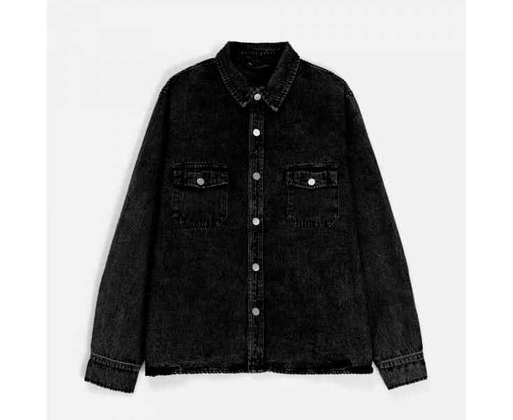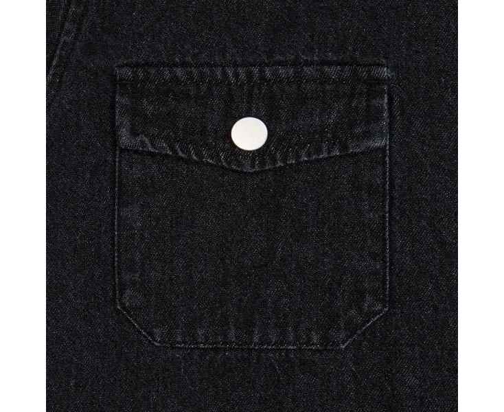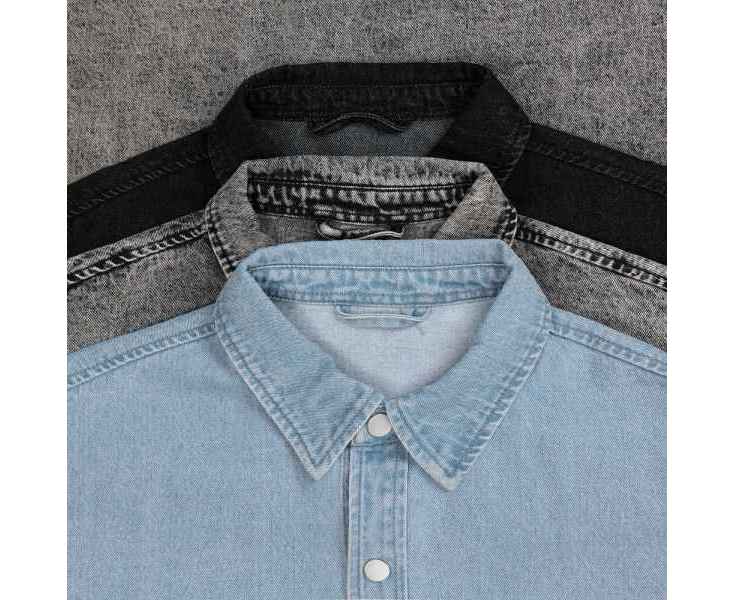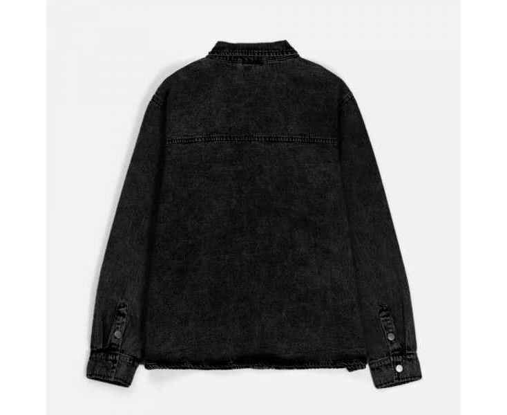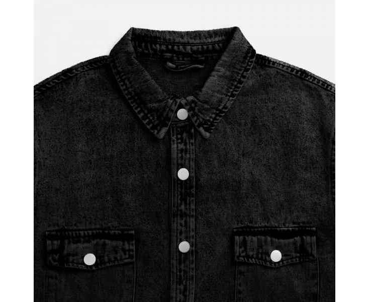 Джинсовая куртка-рубашка унисекс на кнопках прямого силуэта.
