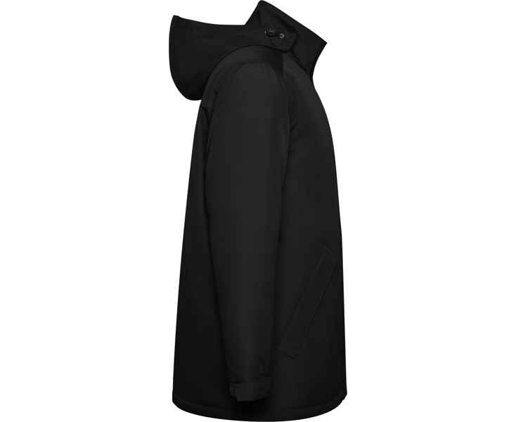 Водонепроницаемая куртка-парка с мягкой подкладкой. Высокий воротник со складным капюшоном и застежкой-липучкой. Центральная застежка-молния с клапанами. Боковые карманы на застежке-молнии с фиксированным клапаном. Внутренний карман с застежкой-липучкой. Регулируемые манжеты с петлей для ремня на липучке. Внутренний доступ для персонализации и декорирования на левой стороне груди и спине.