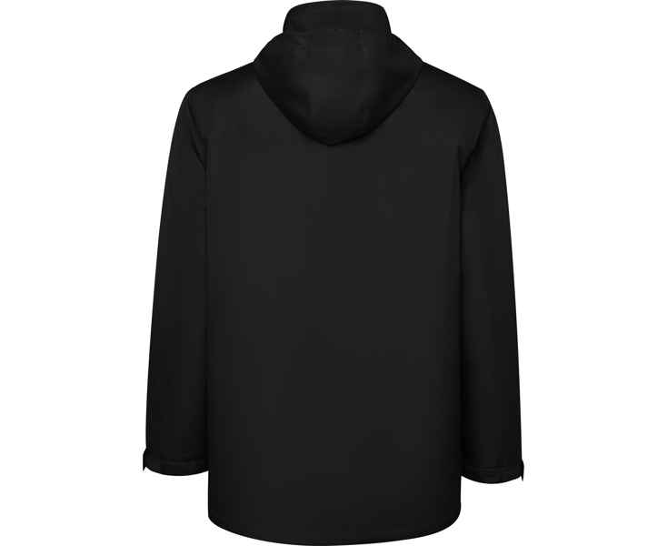 Водонепроницаемая куртка-парка с мягкой подкладкой. Высокий воротник со складным капюшоном и застежкой-липучкой. Центральная застежка-молния с клапанами. Боковые карманы на застежке-молнии с фиксированным клапаном. Внутренний карман с застежкой-липучкой. Регулируемые манжеты с петлей для ремня на липучке. Внутренний доступ для персонализации и декорирования на левой стороне груди и спине.