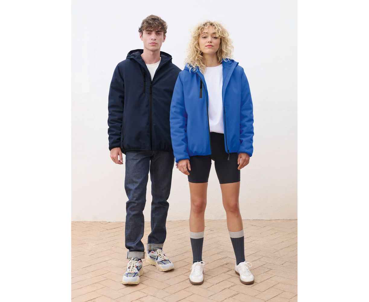 Мужская куртка софтшелл на молнии и с капюшоном.