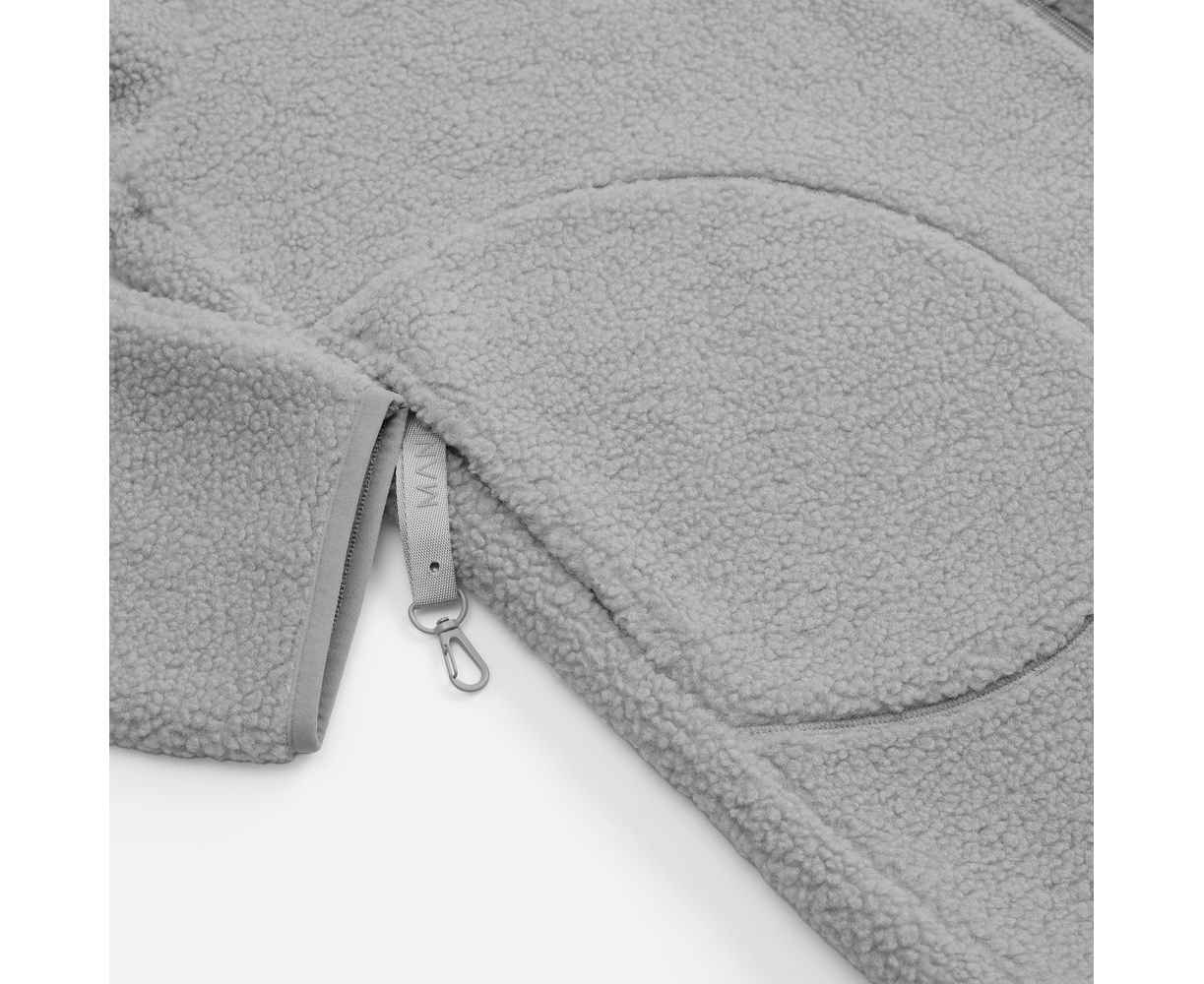 Куртка дополнена двумя боковыми карманами: в правом предусмотрен карабин для ключей или пропуска — практичная деталь для повседневной жизни. Молния с двойным бегунком позволяет регулировать посадку и добавляет функциональности.