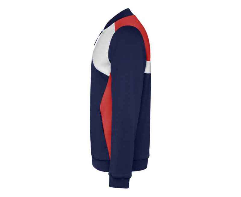 Спортивная куртка на молнии. Боковые карманы закрываются на молнию. Воротник, манжеты и низ из риба 1х1. Ассиметричная левая сторона спроектирована специально для вышивки. Может быть с комбинирована с брюками Rhodes.