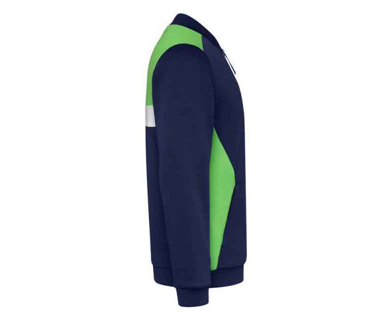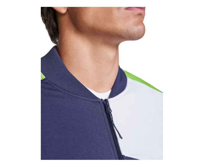 Спортивная куртка на молнии. Боковые карманы закрываются на молнию. Воротник, манжеты и низ из риба 1х1. Ассиметричная левая сторона спроектирована специально для вышивки. Может быть с комбинирована с брюками Rhodes.