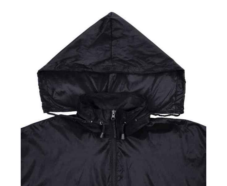 - Карман куртки служит сумочкой для нее: при необходимости ветровку можно компактно сложить, застегнуть карман на молнию и использовать пришитую эластичную тесьму, чтобы носить сложенную ветровку с собой на поясе