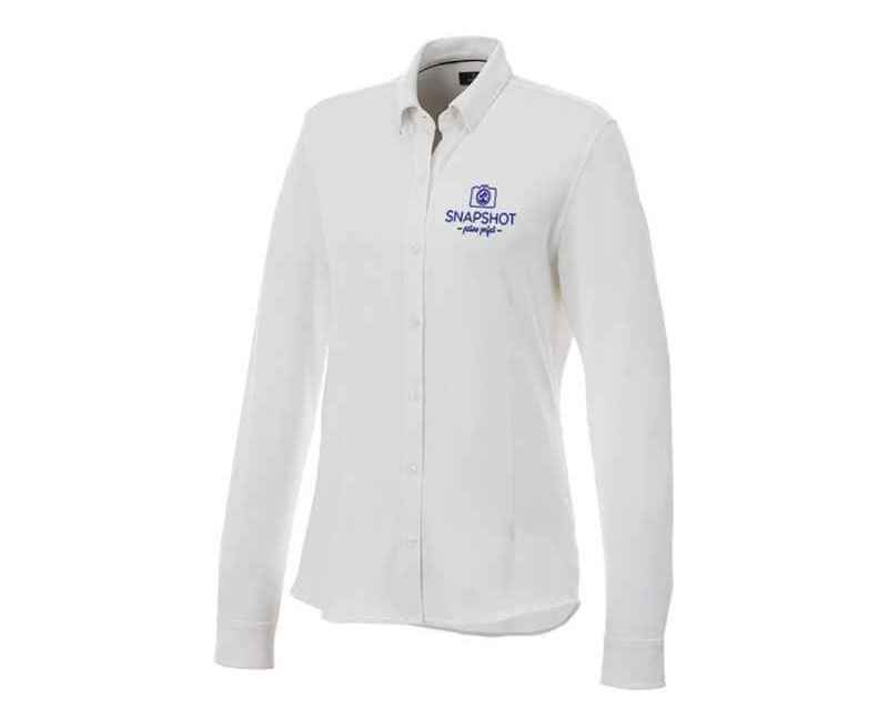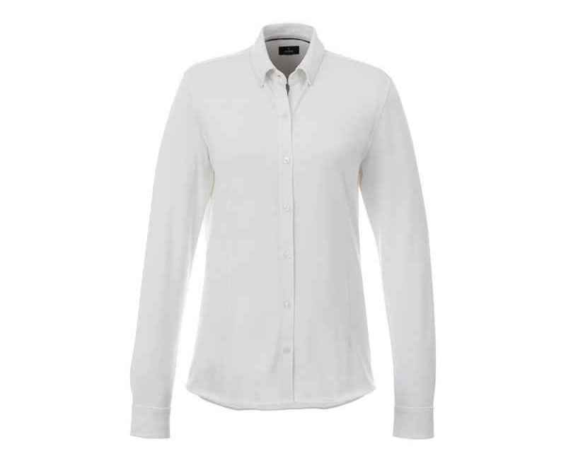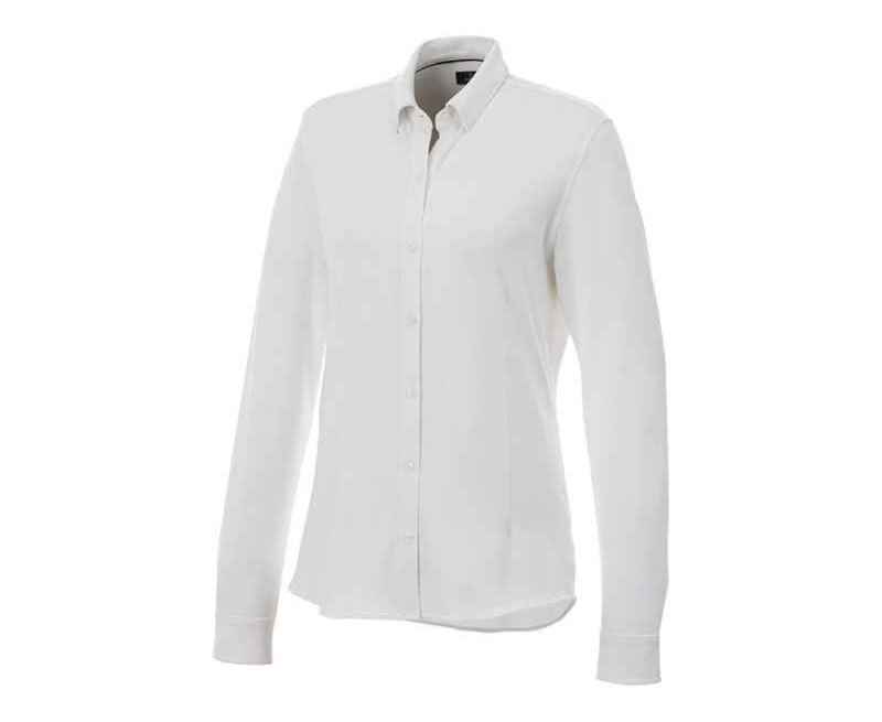 Женская рубашка Bigelow из пике с длинным рукавом. Воротник из ткани изделия. Стрейтч-ткань. Регулируемый манжет на одной пуговице. Воротник на пуговицах. Швы моделирующие фигуру и приталенный крой. Атласная окантовка внутренней части горловины. Гравированные пуговицы в цвет изделия. Тканая метка. Двойное трикотажное пике, 95% хлопок и 5% эластан. 200 г/м².