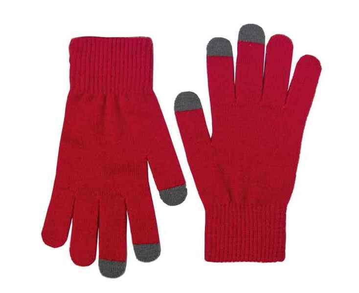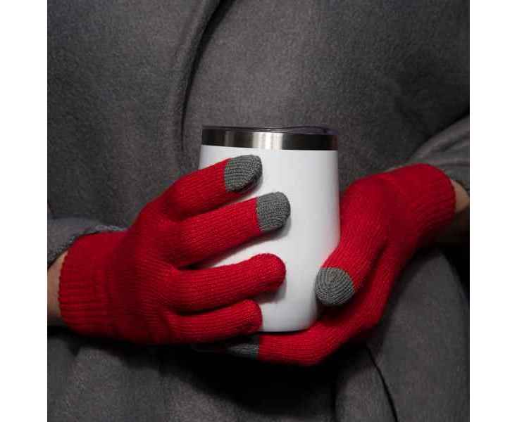 Перчатки из теплого и мягкого акрила с сенсорными наконечниками.Основной цвет: красный. Цвет сенсорных вставок: серый меланж. Цвет, близкий к Pantone 200C.