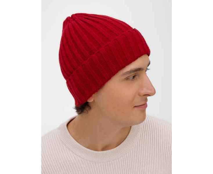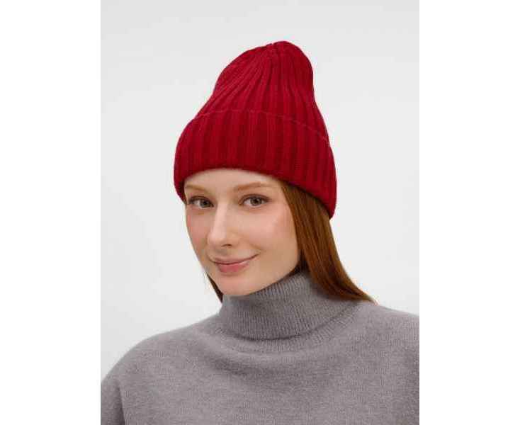 Однослойная шапка рельефной вязки с отворотом.