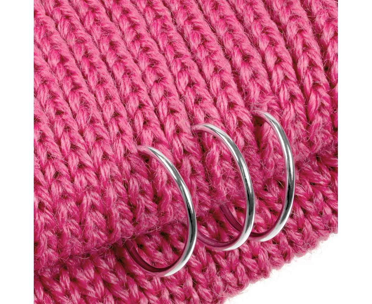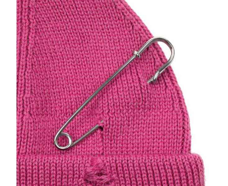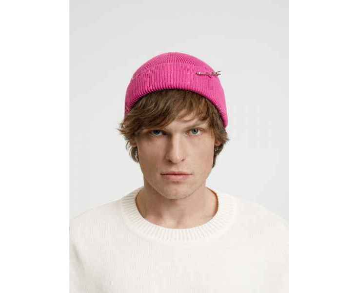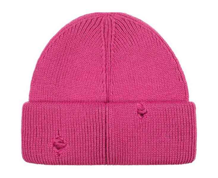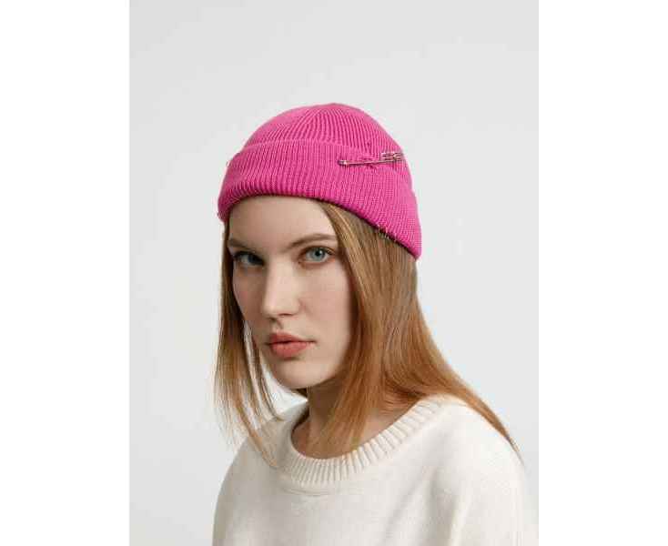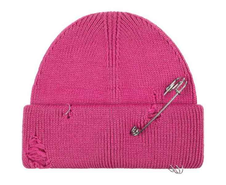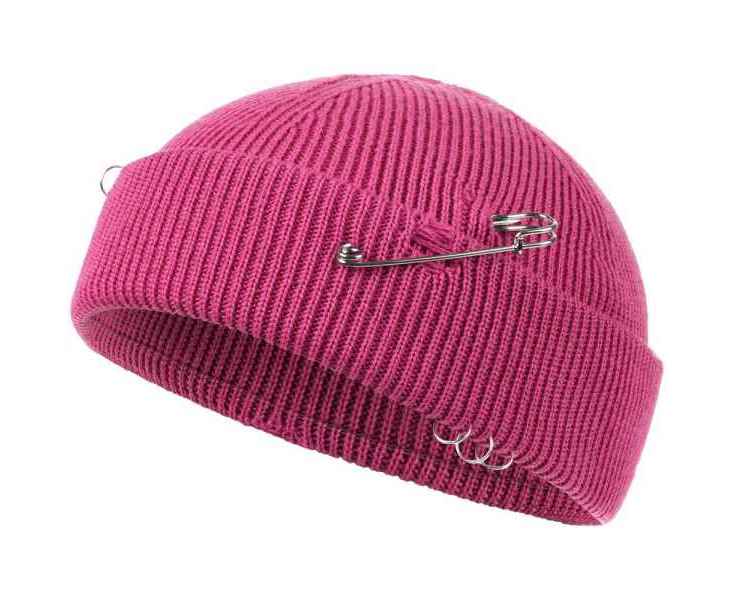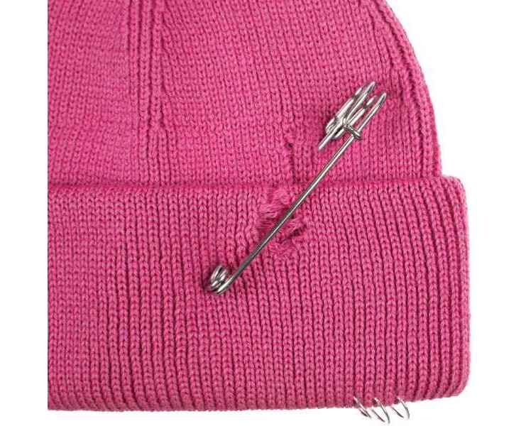 Однослойная шапка бини с рваным отворотом и металлическими аксессуарами для дерзких образов в любом возрасте. Яркий и запоминающийся акцент в стиле гранж.