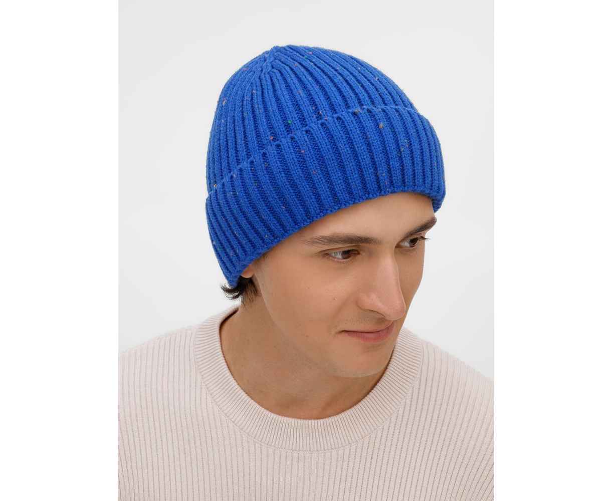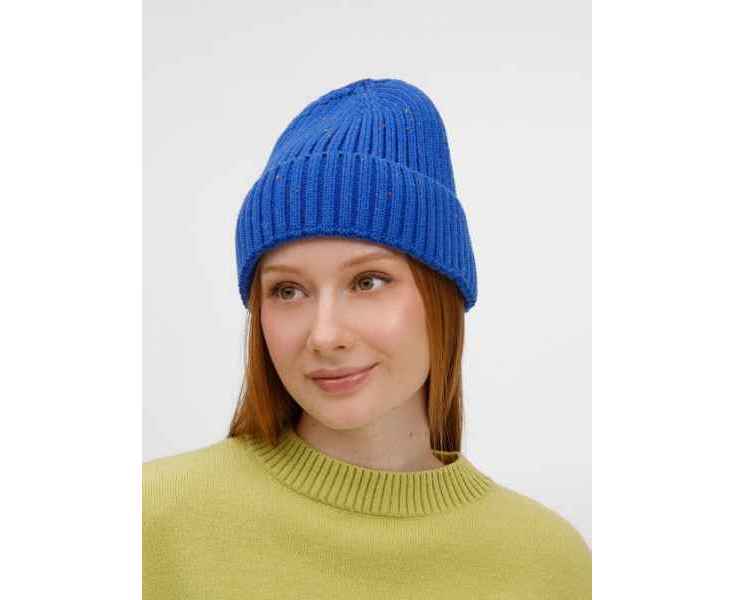 Шапка-бини с отворотом выполнена крупной резинкой из мягкой акриловой пряжи, которая создает дополнительный объем и хорошо сохраняет тепло. Благодаря оригинальному дизайну она позволит создать запоминающийся образ со стильным и лаконичным акцентом.