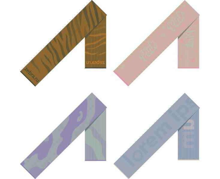 Шарф рельефной вязки с вывязанным логотипом и индивидуальным рисунком в фирменной цветовой гамме. Благодаря определенной схеме вязания со сменой петель создается настоящий стереоскопический эффект, — на таком полотне еще интереснее рассматривать рисунок.