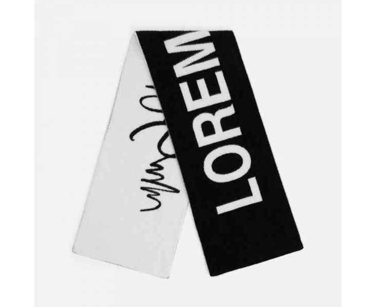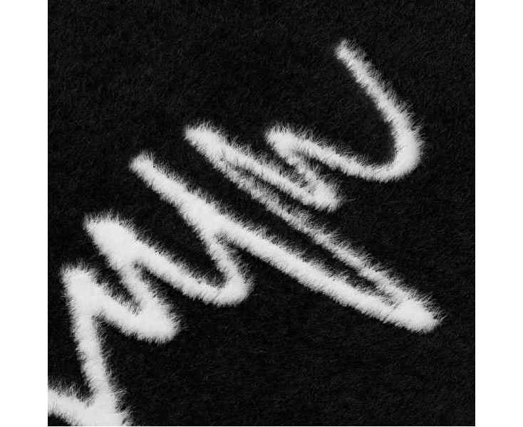 Шарф из пушистого нейлона с вывязанным логотипом и индивидуальным рисунком в черно-белой гамме.