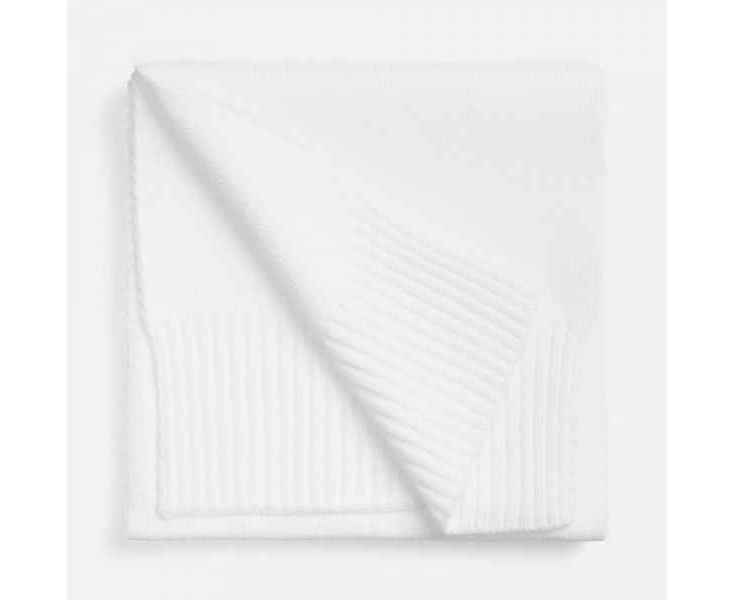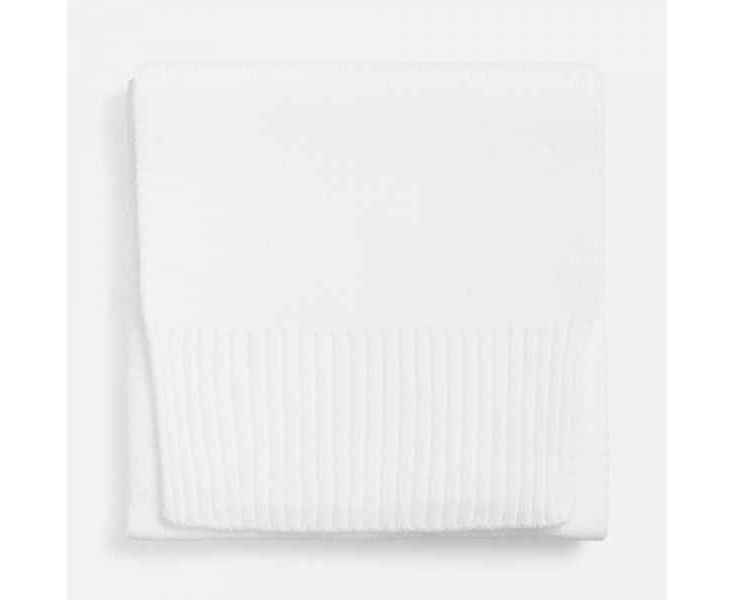 Классический однослойный шарф гладкой вязки. Края, связанные резинкой, придают изделию завершенный и аккуратный вид.