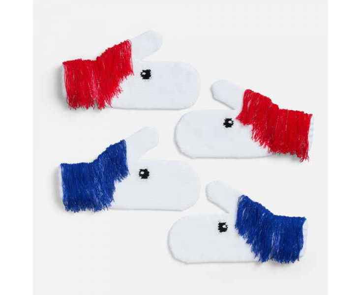 «Игогошки» — веселые варежки прямиком из детства! В такой дружной компании сразу хочется побежать на новогоднюю елку, лихо прокатиться с горки или поиграть в снежки. Грива у этих лошадок игриво колышется яркой бахромой на белоснежном фоне, а озорные глазки так и влюбляют в себя — такой задор сразу передается счастливому обладателю варежек, стоит их только надеть!