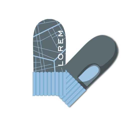 Варежки с вывязанным логотипом и индивидуальным рисунком в фирменной цветовой гамме.