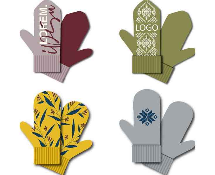 Варежки с вывязанным логотипом и индивидуальным рисунком в фирменной цветовой гамме.